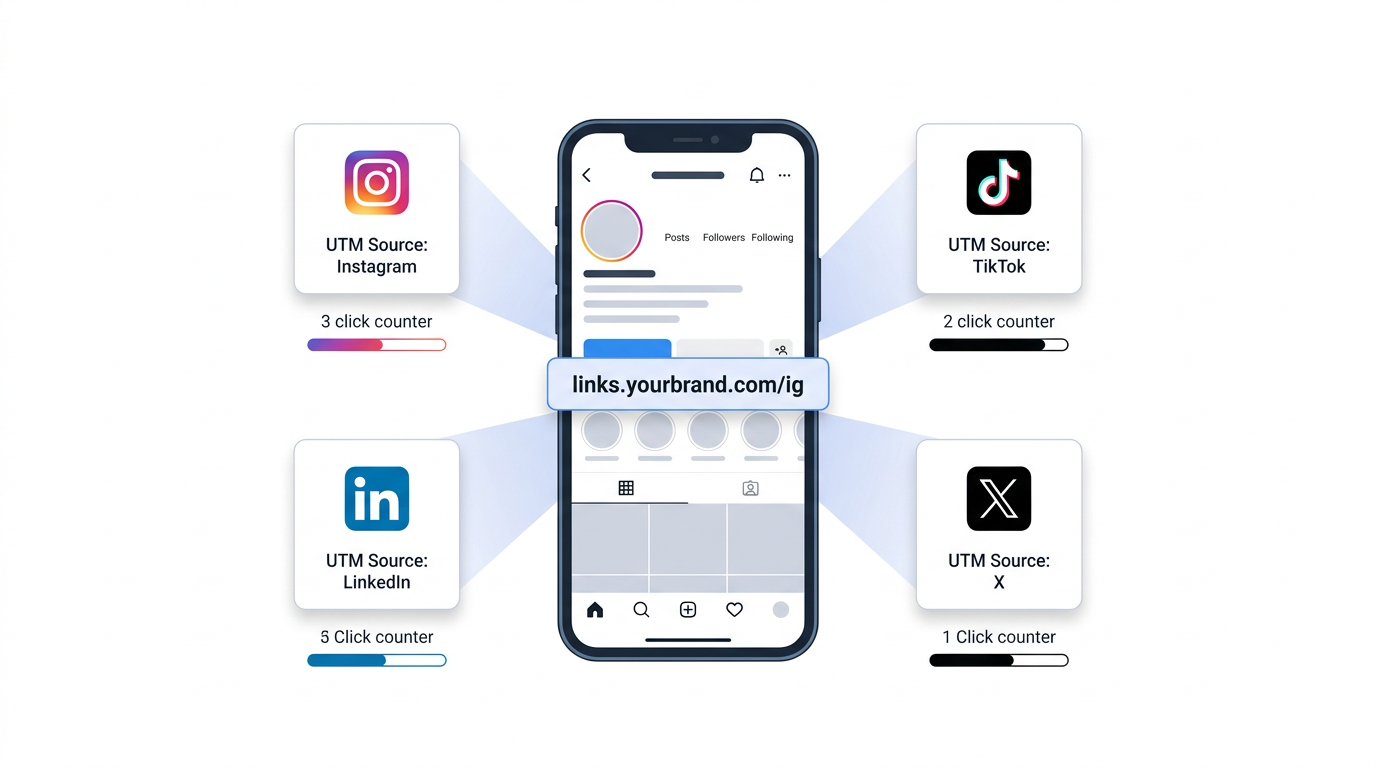 A bio link without attribution is a missed opportunity. Every click from your bio link should arrive at your destination tagged with consistent UTM parameters that identify the source.